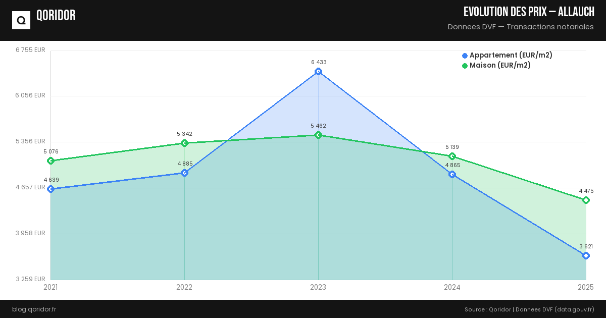 L'évolution des prix à Allauch dépend du quartier, du type de bien et de la conjoncture. Nos données, basées sur les transactions réelles enregistrées par les notaires, vous permettent de suivre les tendances récentes.