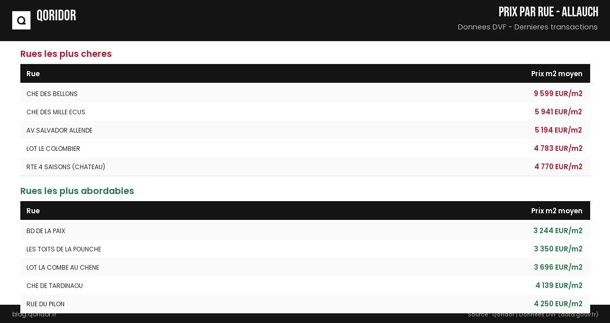 Prix au m² par rue à Allauch