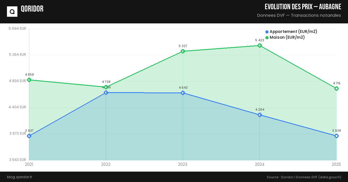 L'évolution des prix à Aubagne dépend du quartier, du type de bien et de la conjoncture. Nos données, basées sur les transactions réelles enregistrées par les notaires, vous permettent de suivre les tendances récentes.