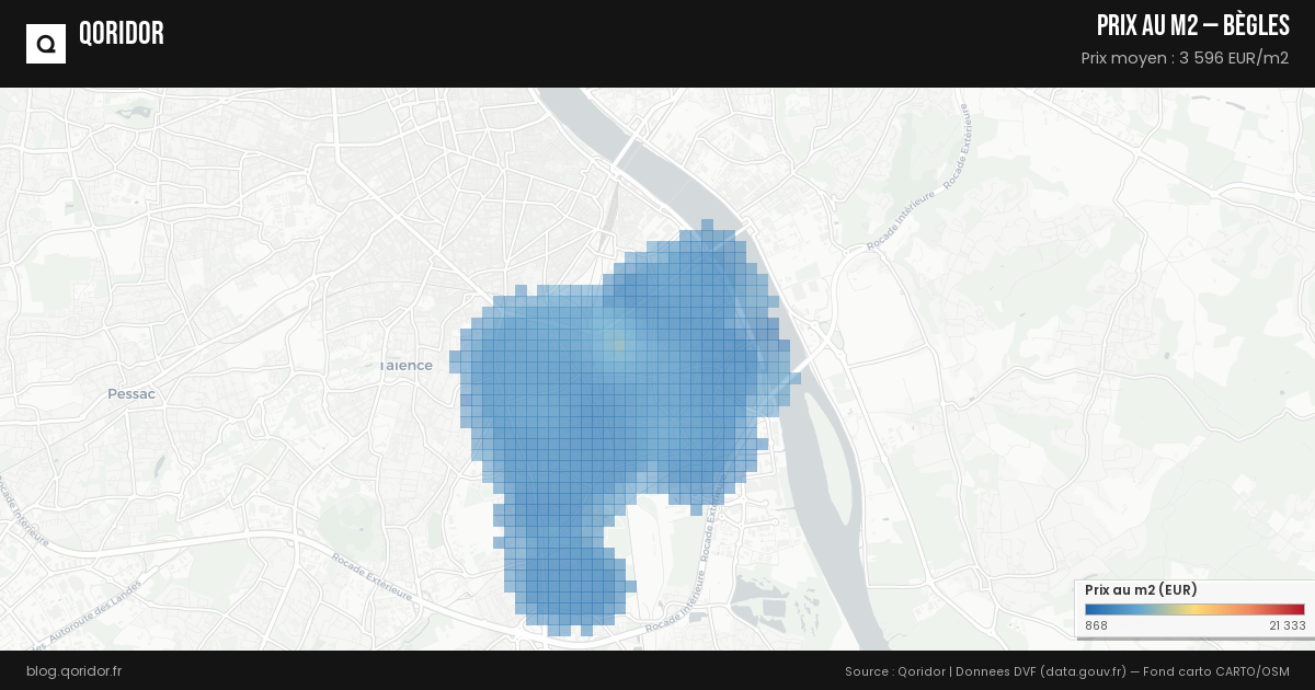 Le prix moyen au m² à Bègles est calculé à partir des transactions immobilières enregistrées (données DVF). Consultez nos données mises à jour automatiquement pour connaître le prix actuel.