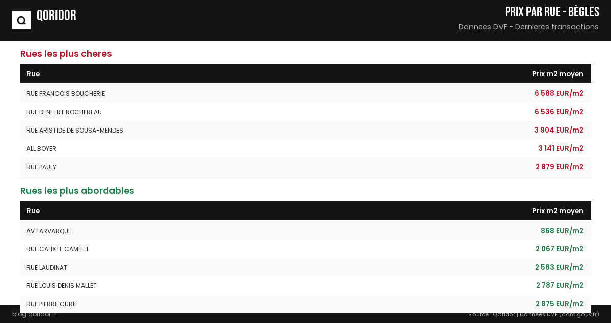 Prix au m² par rue à Bègles