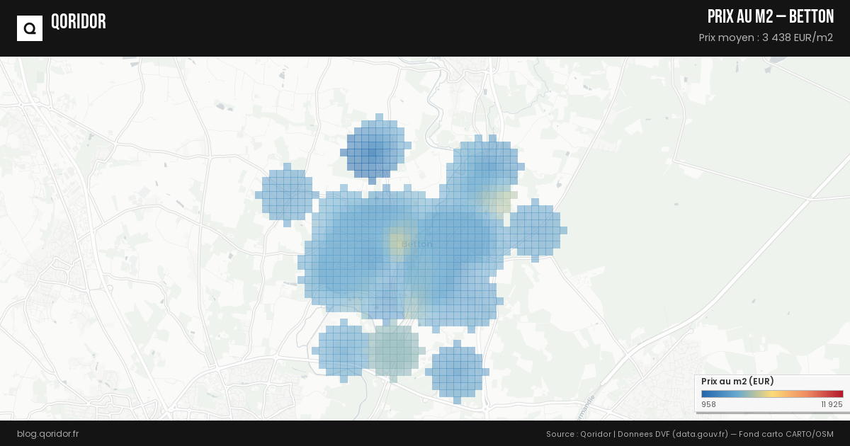 Le prix moyen au m² à Betton est calculé à partir des transactions immobilières enregistrées (données DVF). Consultez nos données mises à jour automatiquement pour connaître le prix actuel.