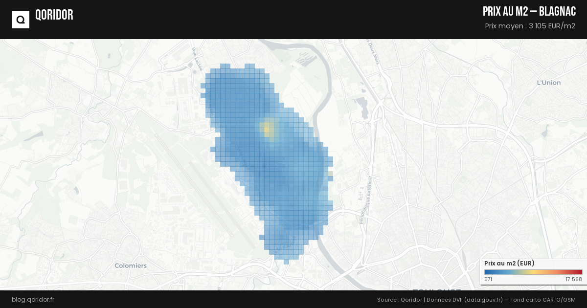 Le prix moyen au m² à Blagnac est calculé à partir des transactions immobilières enregistrées (données DVF). Consultez nos données mises à jour automatiquement pour connaître le prix actuel.