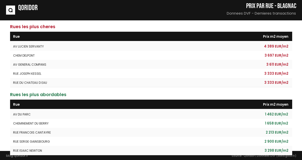 Infographies sur les prix au m² à Blagnac. Téléchargez et partagez librement avec mention de la source.