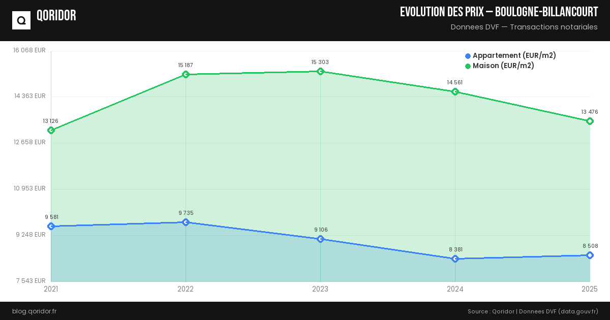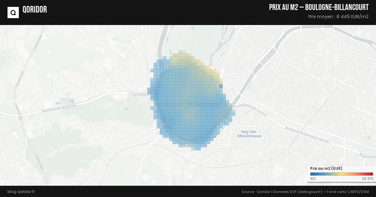 Le prix moyen au m² à Boulogne-Billancourt est calculé à partir des transactions immobilières enregistrées (données DVF). Consultez nos données mises à jour automatiquement pour connaître le prix actuel.
