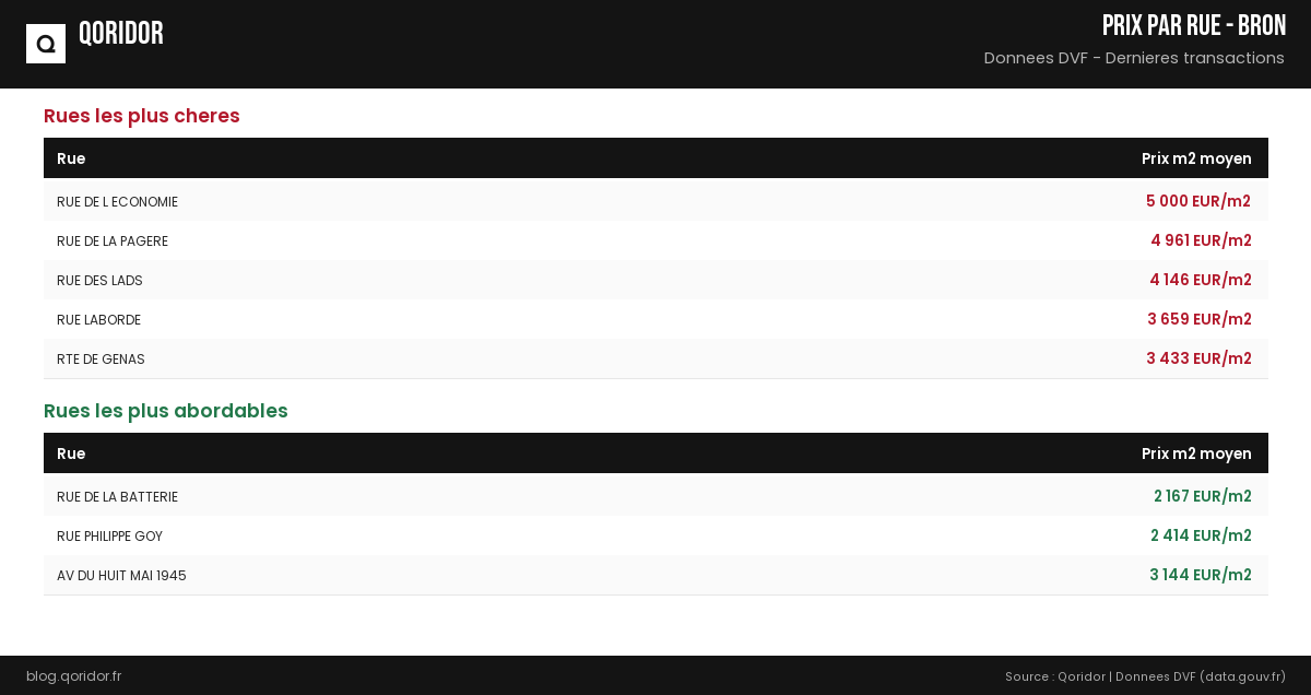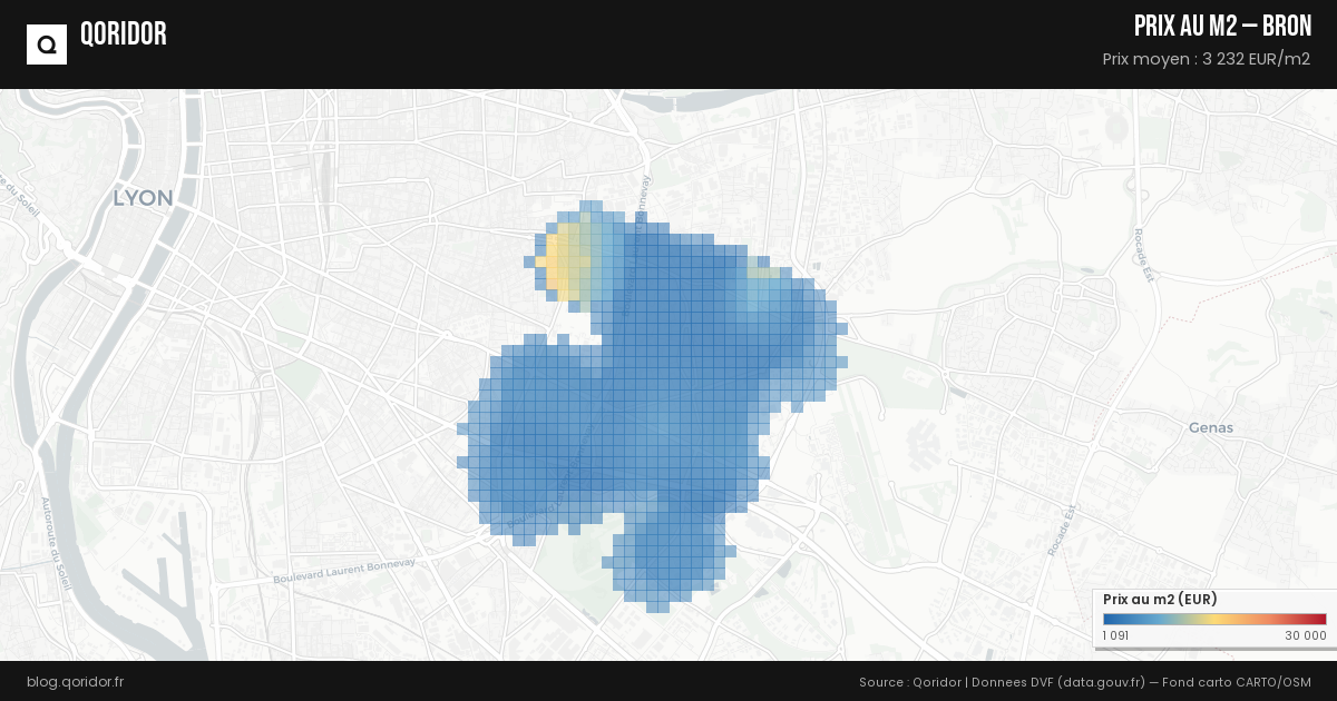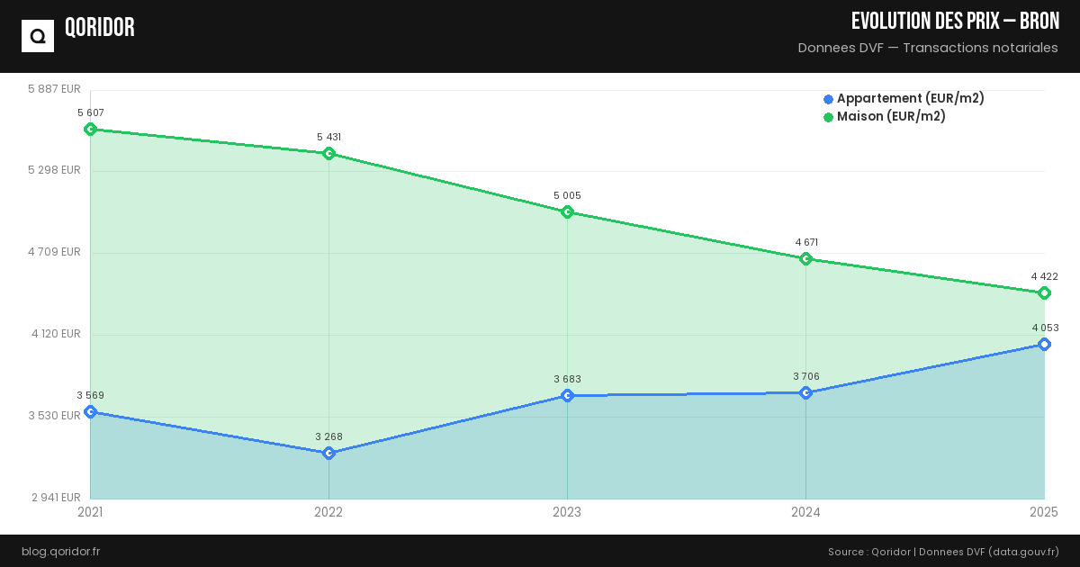 Infographies sur les prix au m² à Bron. Téléchargez et partagez librement avec mention de la source.