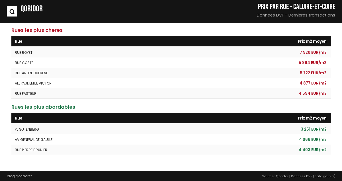 Prix au m² par rue à Caluire-et-Cuire