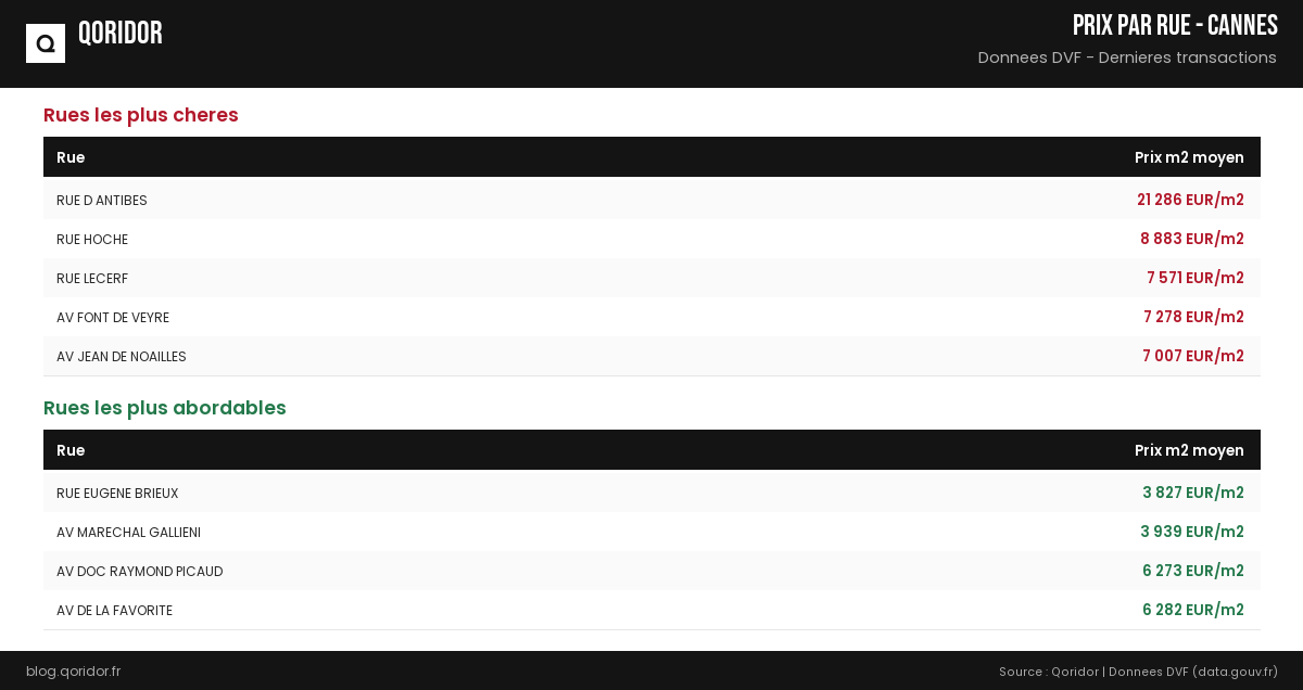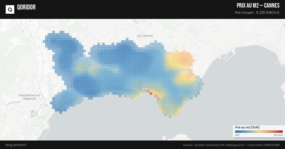 Le prix moyen au m² à Cannes est calculé à partir des transactions immobilières enregistrées (données DVF). Consultez nos données mises à jour automatiquement pour connaître le prix actuel.
