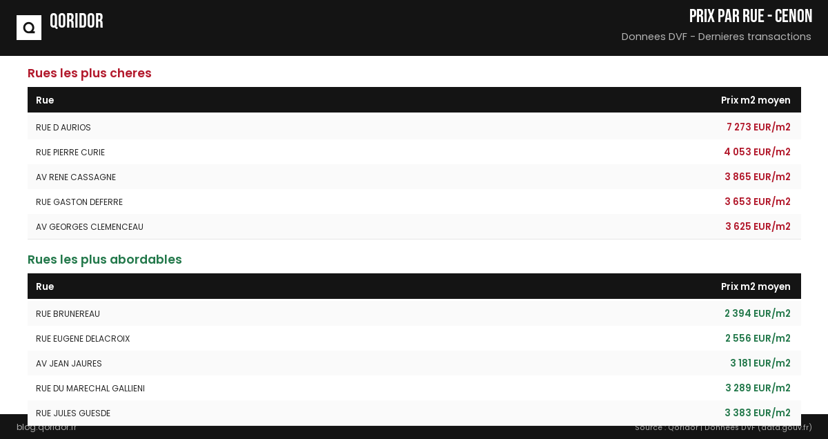 Prix au m² par rue à Cenon