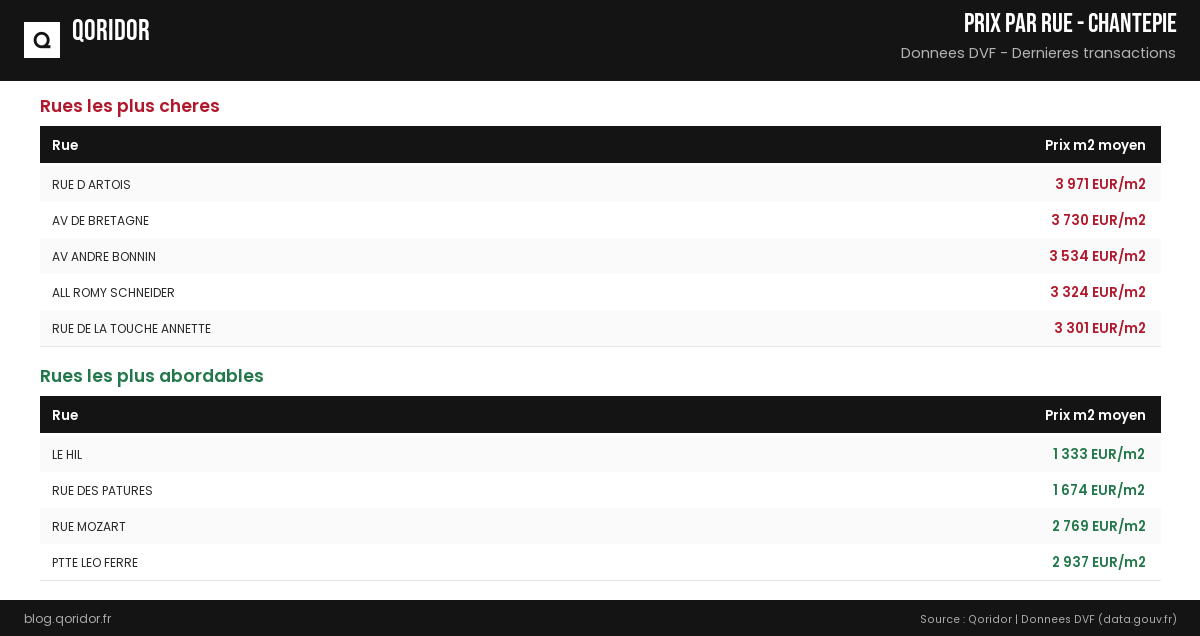 Prix au m² par rue à Chantepie