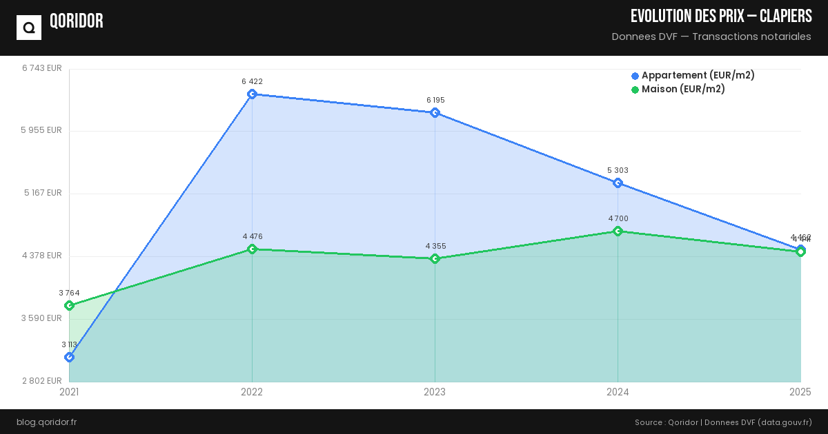Infographies sur les prix au m² à Clapiers. Téléchargez et partagez librement avec mention de la source.