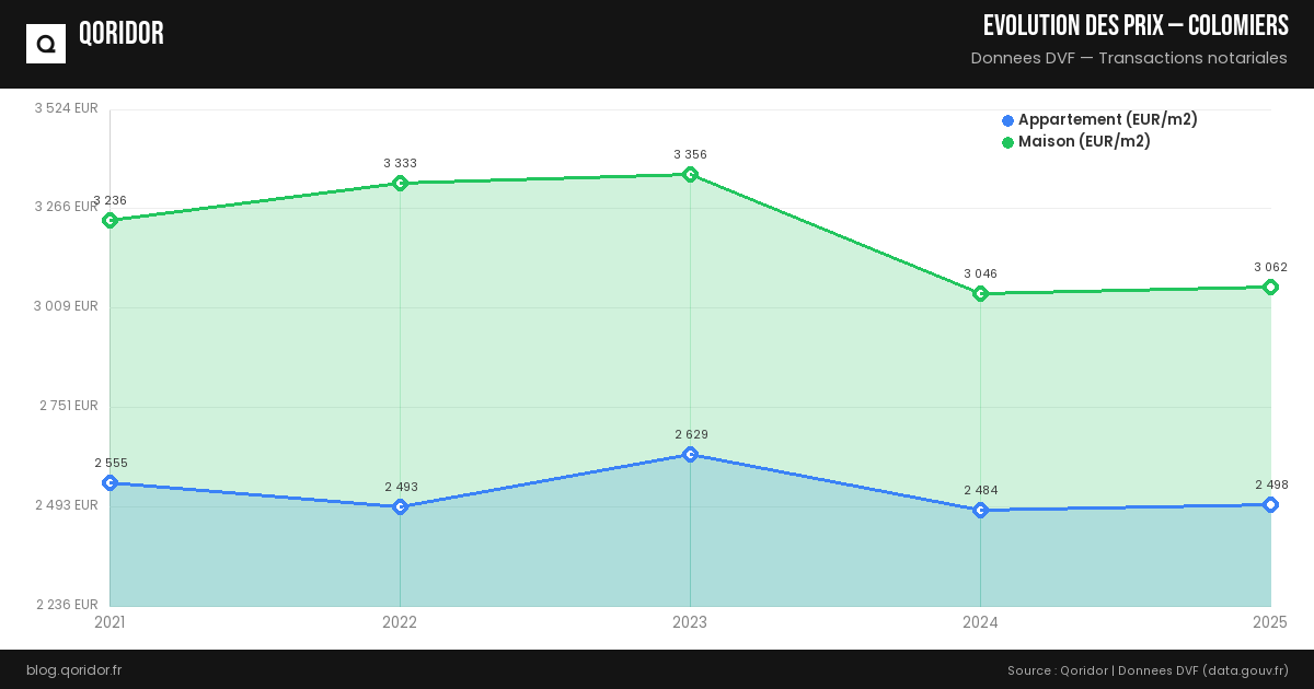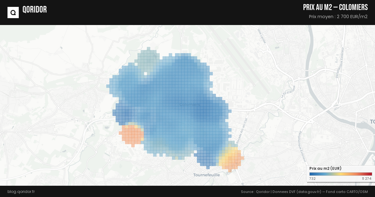 Le prix moyen au m² à Colomiers est calculé à partir des transactions immobilières enregistrées (données DVF). Consultez nos données mises à jour automatiquement pour connaître le prix actuel.