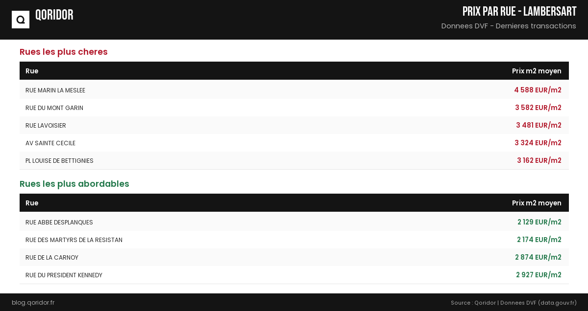 Le prix moyen au m² à Lambersart est calculé à partir des transactions immobilières enregistrées (données DVF). Consultez nos données mises à jour automatiquement pour connaître le prix actuel.