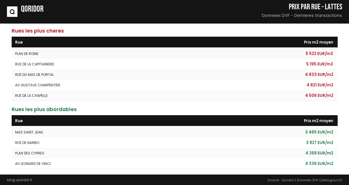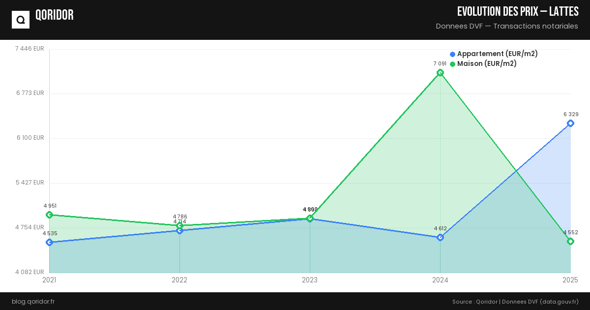 Infographies sur les prix au m² à Lattes. Téléchargez et partagez librement avec mention de la source.