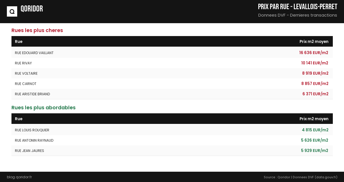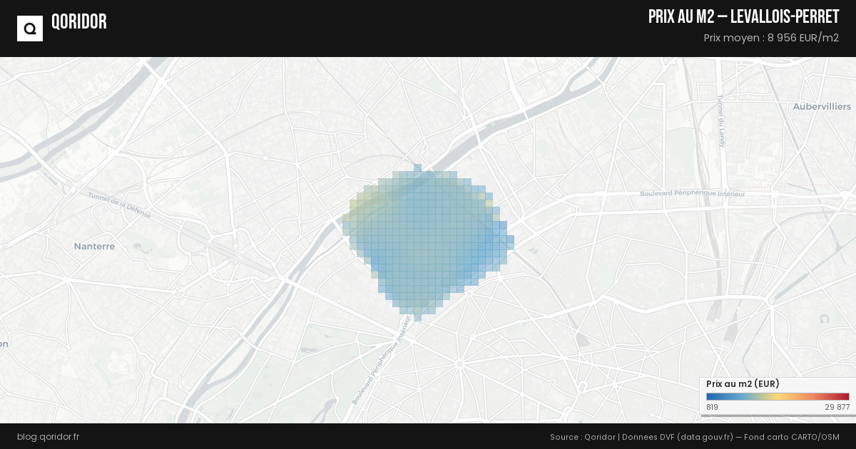 Le prix moyen au m² à Levallois-Perret est calculé à partir des transactions immobilières enregistrées (données DVF). Consultez nos données mises à jour automatiquement pour connaître le prix actuel.