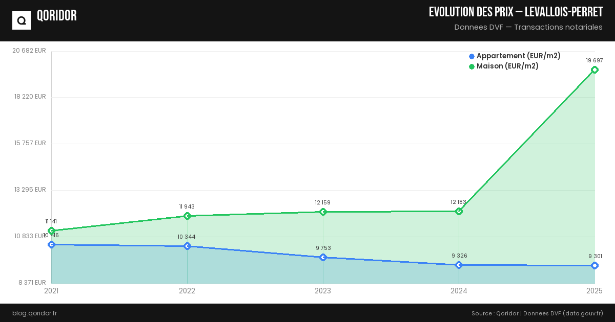 L'évolution des prix à Levallois-Perret dépend du quartier, du type de bien et de la conjoncture. Nos données, basées sur les transactions réelles enregistrées par les notaires, vous permettent de suivre les tendances récentes.