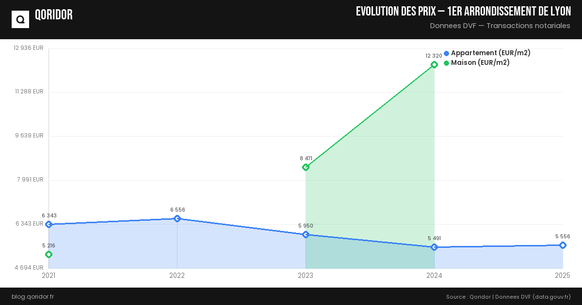 Évolution du prix de l'immobilier à 1er arrondissement de Lyon