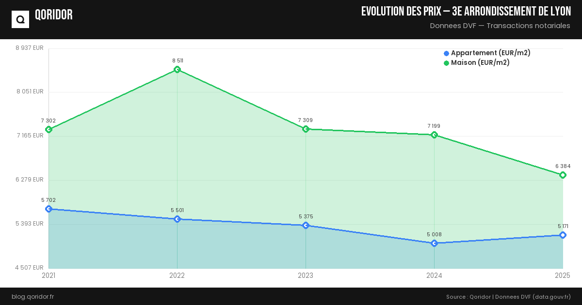 Évolution du prix de l'immobilier à 3e arrondissement de Lyon