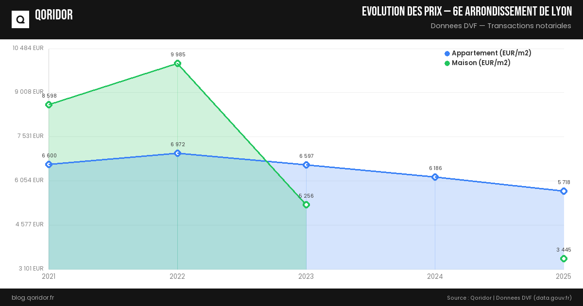 Évolution du prix de l'immobilier à 6e arrondissement de Lyon