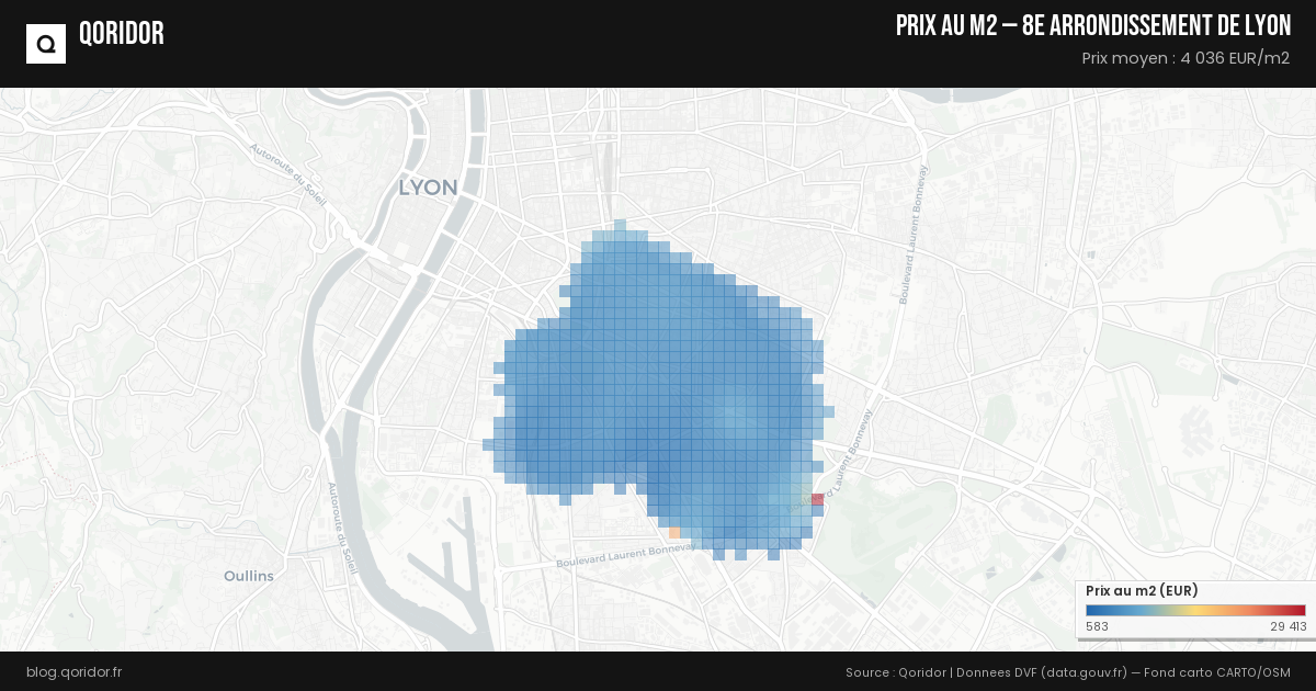 Le prix du m² pour un appartement à 8e arrondissement de Lyon s'établit en moyenne à 4 016 €. Il peut varier entre 2 500 € et 5 577 € en fonction des quartiers et des caractéristiques du bien.