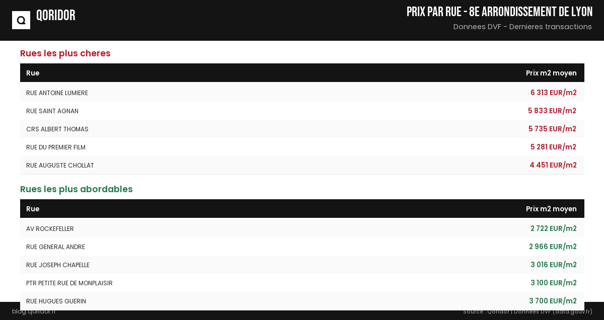 Prix au m² par rue à 8e arrondissement de Lyon