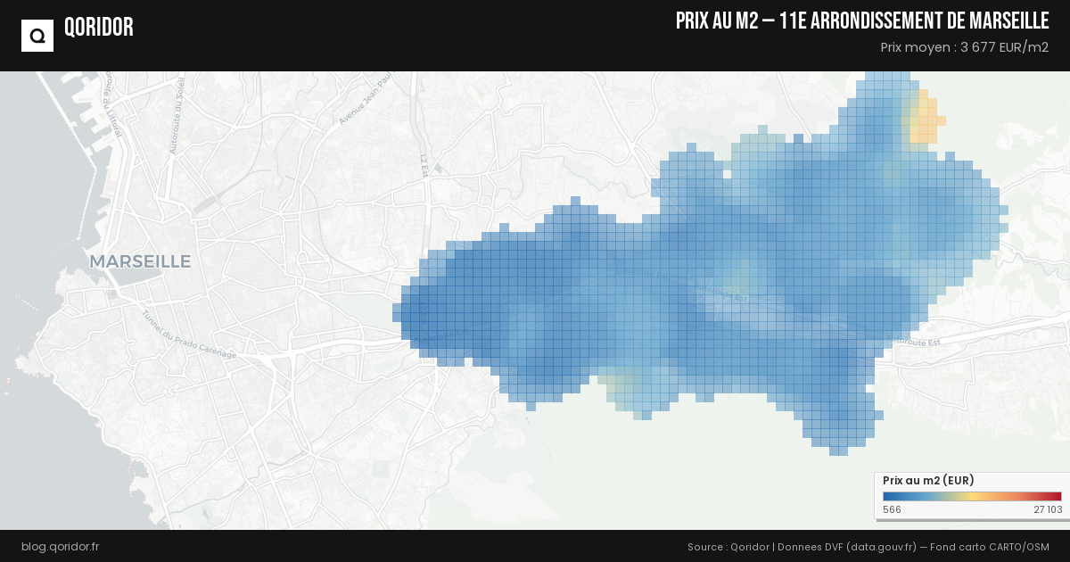 Carte des prix au m² à 11e arrondissement de Marseille