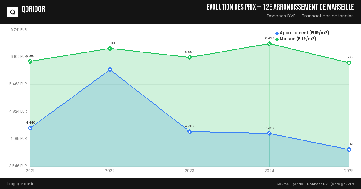 Évolution du prix de l'immobilier à 12e arrondissement de Marseille