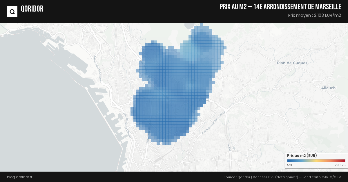 Carte des prix au m² à 14e arrondissement de Marseille
