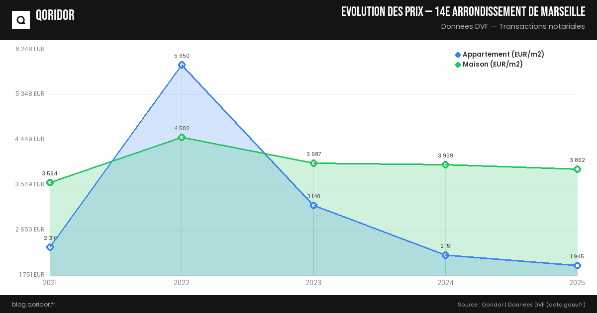 Évolution du prix de l'immobilier à 14e arrondissement de Marseille