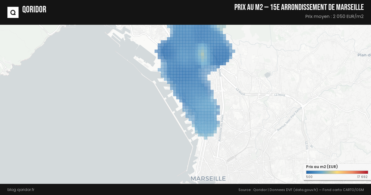 Carte des prix au m² à 15e arrondissement de Marseille