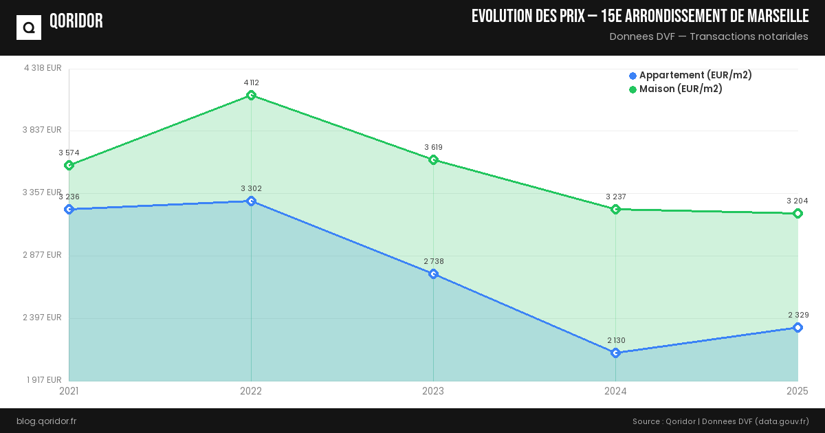 Évolution du prix de l'immobilier à 15e arrondissement de Marseille