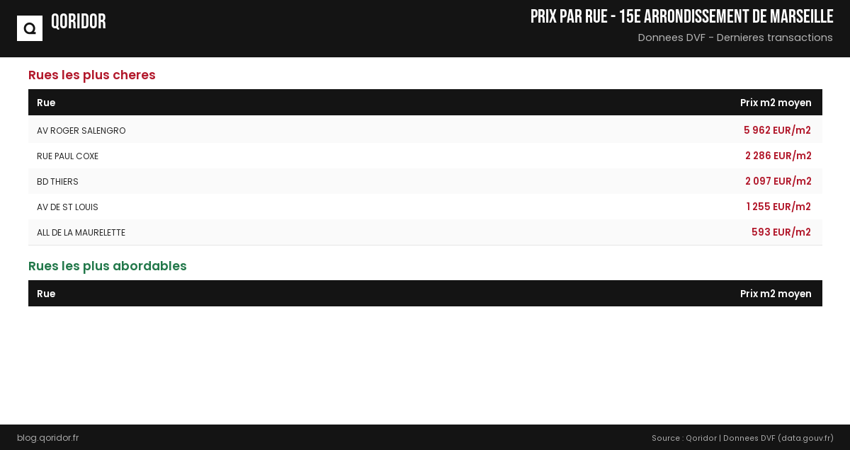 Prix au m² par rue à 15e arrondissement de Marseille