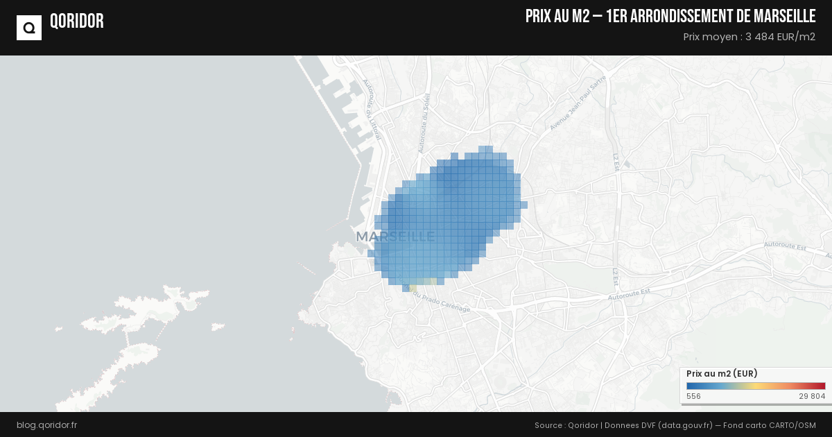 Carte des prix au m² à 1er arrondissement de Marseille