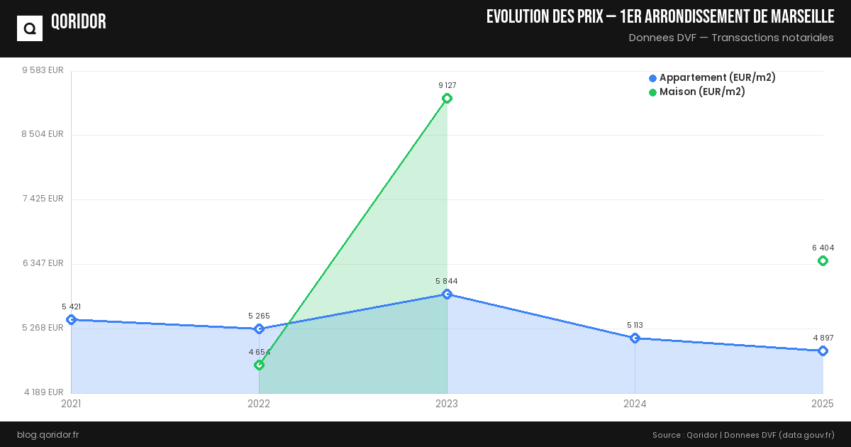 Évolution du prix de l'immobilier à 1er arrondissement de Marseille