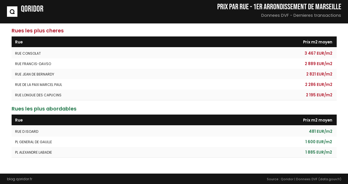 Prix au m² par rue à 1er arrondissement de Marseille