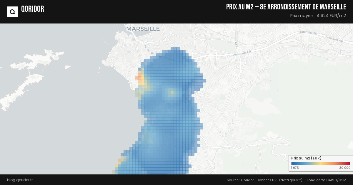 Carte des prix au m² à 8e arrondissement de Marseille