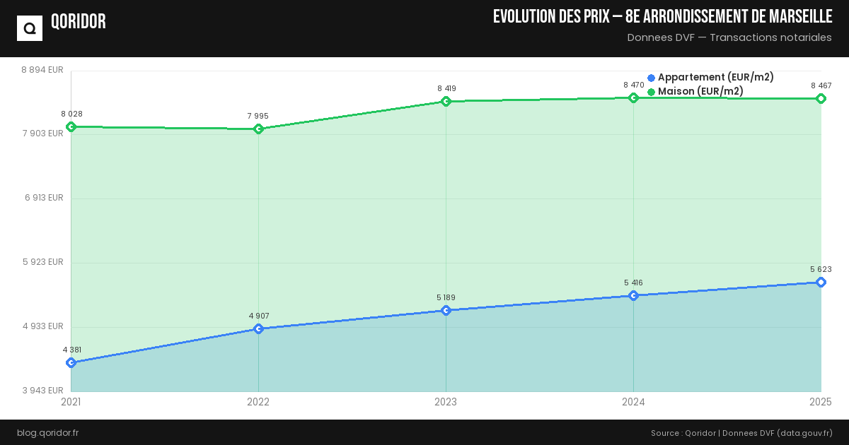 Évolution du prix de l'immobilier à 8e arrondissement de Marseille