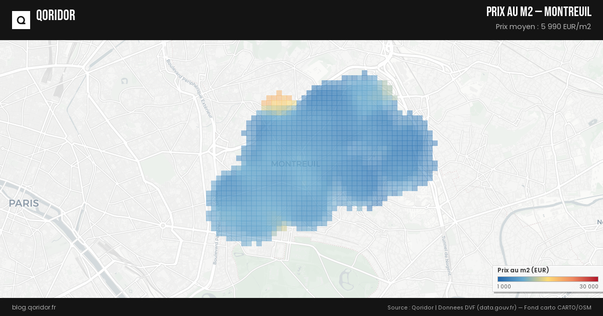 Le prix moyen au m² à Montreuil est calculé à partir des transactions immobilières enregistrées (données DVF). Consultez nos données mises à jour automatiquement pour connaître le prix actuel.