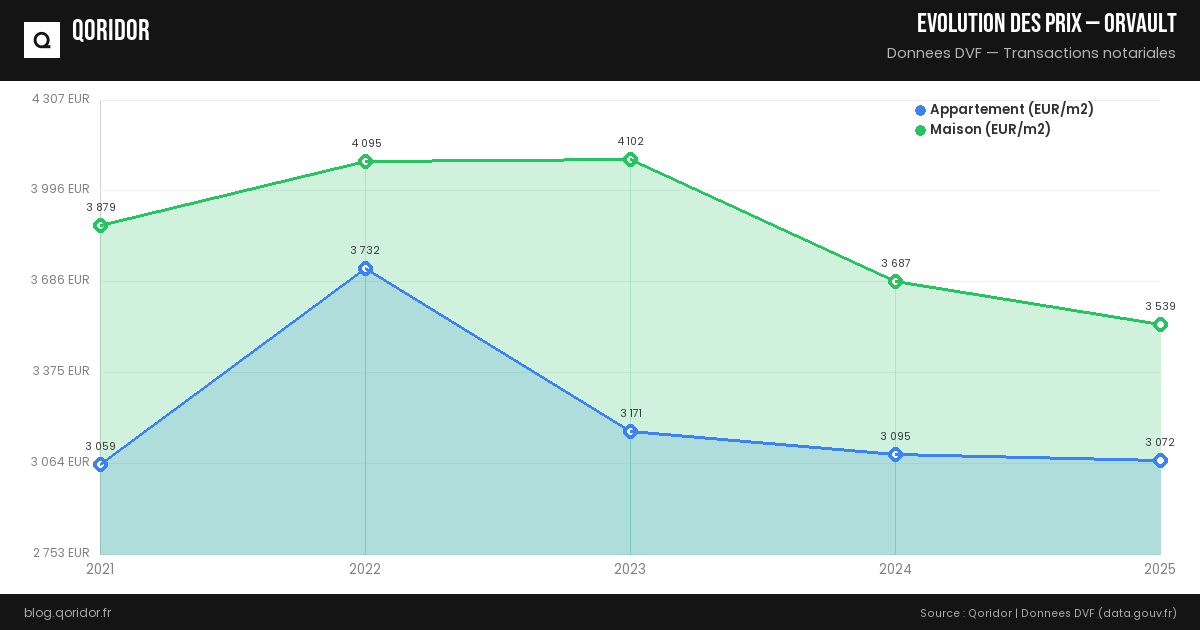 Le prix moyen au m² à Orvault est calculé à partir des transactions immobilières enregistrées (données DVF). Consultez nos données mises à jour automatiquement pour connaître le prix actuel.