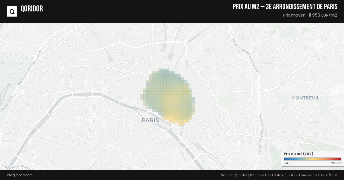 Le prix du m² pour un appartement à 3e arrondissement de Paris s'établit en moyenne à 11 953 €. Il peut varier entre 8 696 € et 15 571 € en fonction des quartiers et des caractéristiques du bien.