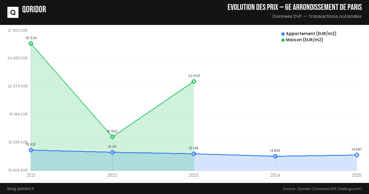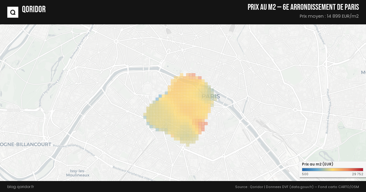 Le prix du m² pour un appartement à 6e arrondissement de Paris s'établit en moyenne à 14 899 €. Il peut varier entre 10 417 € et 20 926 € en fonction des quartiers et des caractéristiques du bien.