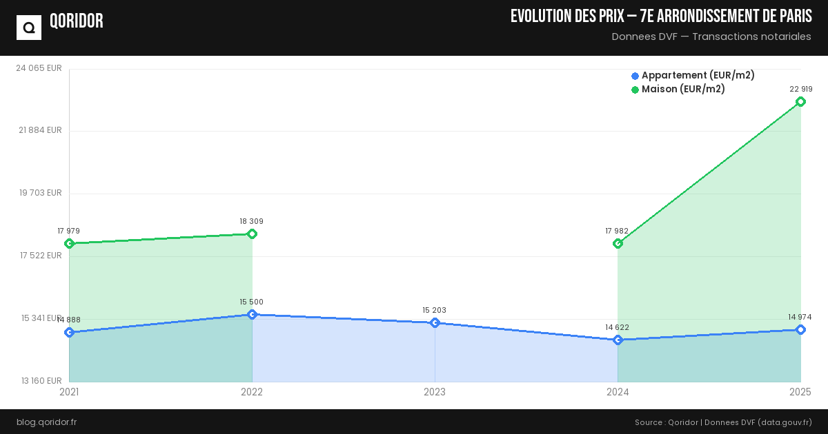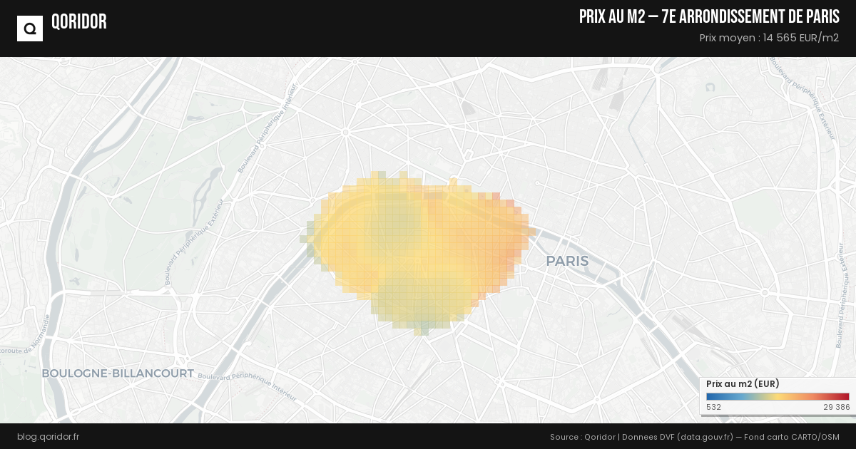Le prix du m² pour un appartement à 7e arrondissement de Paris s'établit en moyenne à 14 565 €. Il peut varier entre 10 270 € et 20 039 € en fonction des quartiers et des caractéristiques du bien.