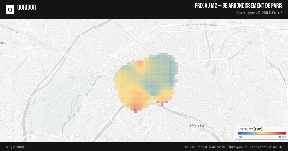 Le prix du m² pour un appartement à 8e arrondissement de Paris s'établit en moyenne à 12 069 €. Il peut varier entre 8 337 € et 16 280 € en fonction des quartiers et des caractéristiques du bien.