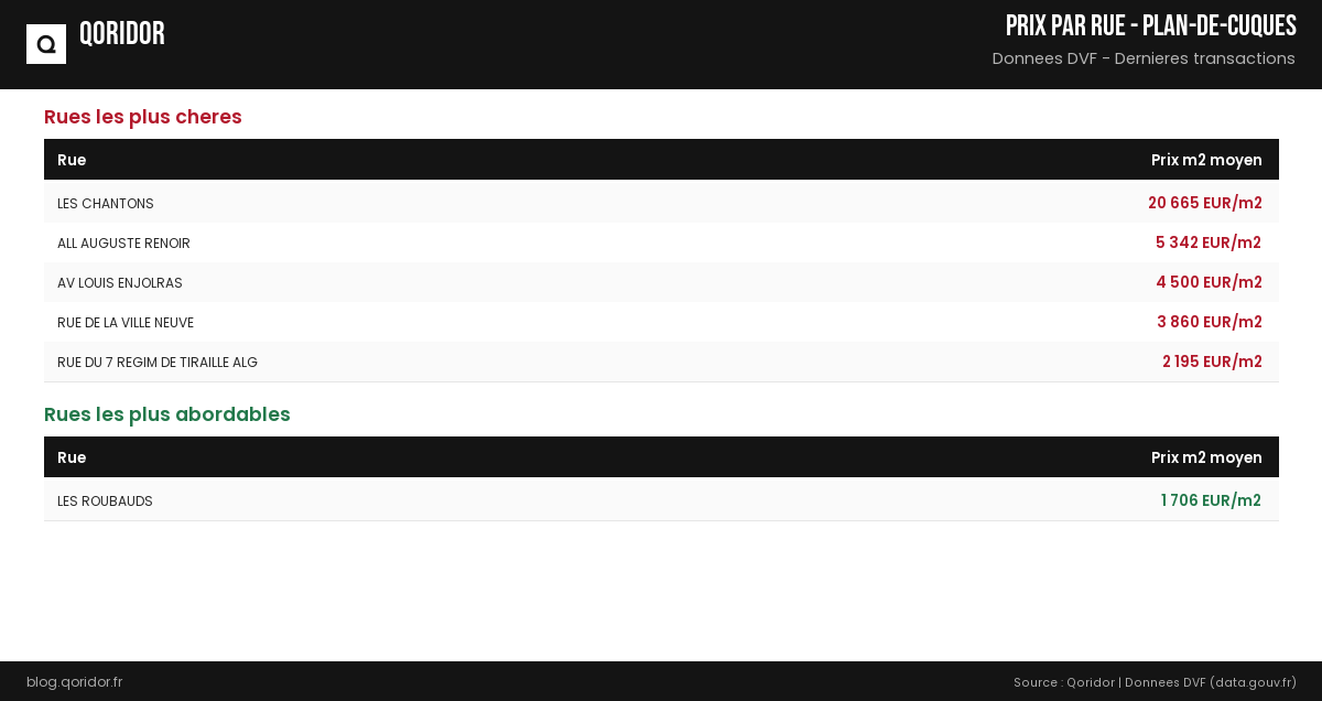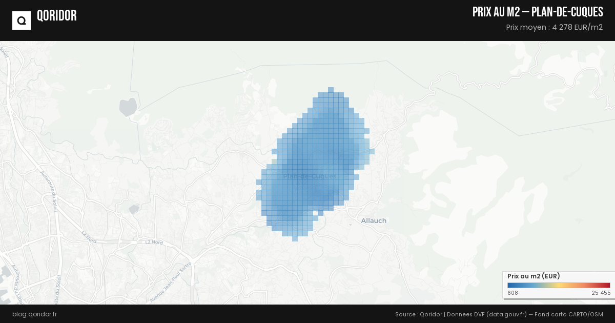 Le prix moyen au m² à Plan-de-Cuques est calculé à partir des transactions immobilières enregistrées (données DVF). Consultez nos données mises à jour automatiquement pour connaître le prix actuel.