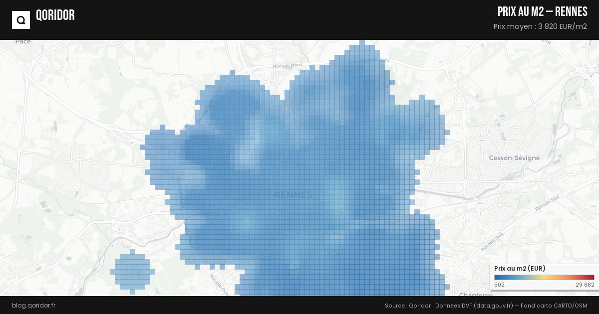 Carte des prix au m² à Rennes