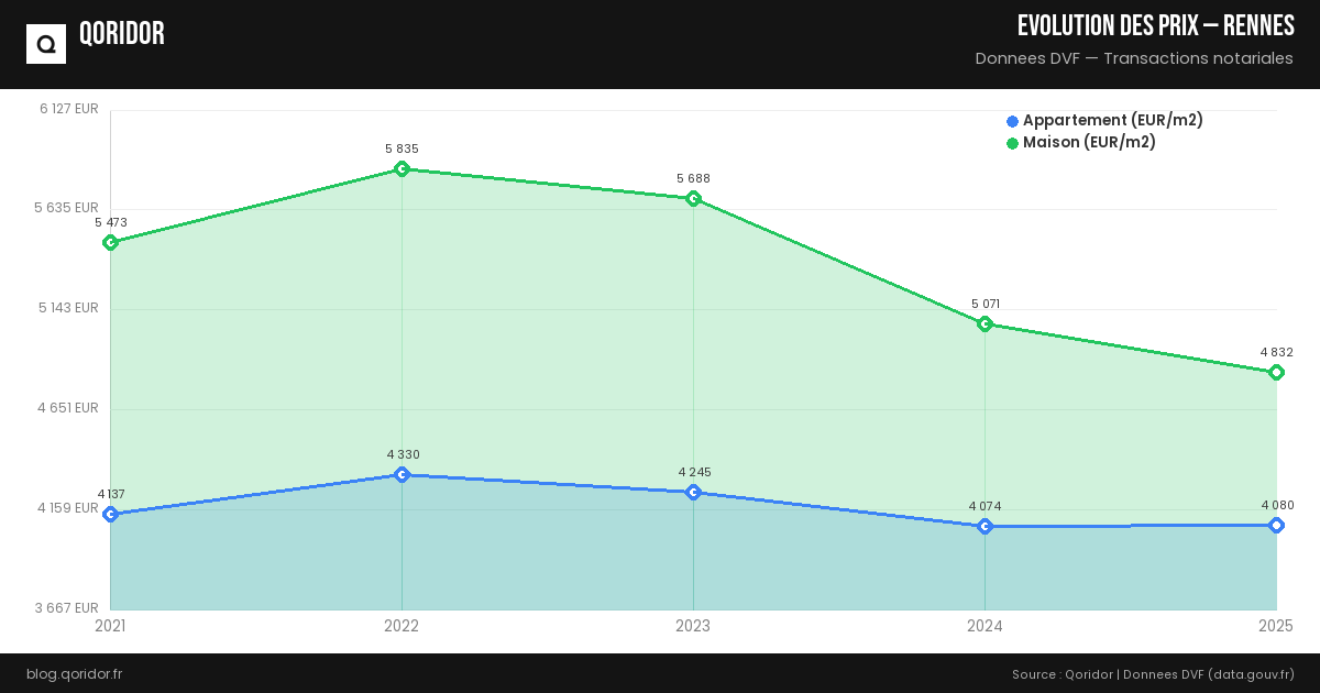 Rennes bénéficie d'un dynamisme économique fort (secteur numérique, université), de la LGV vers Paris, et d'une qualité de vie reconnue. La demande dépasse souvent l'offre, ce qui soutient les prix.