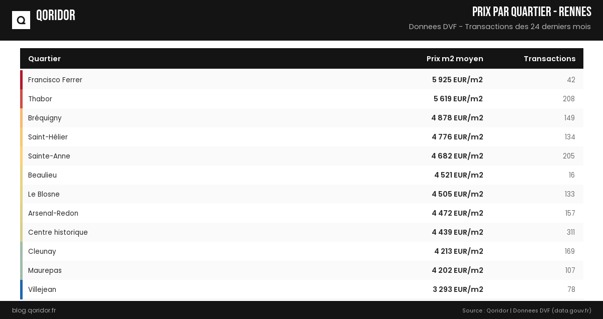 | Quartier | Prix m² moyen | Transactions |