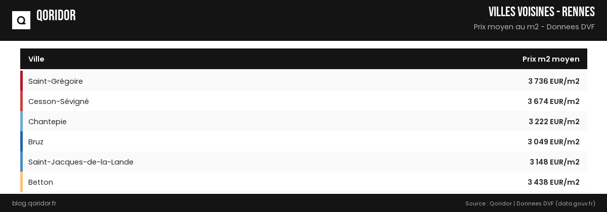 Prix au m² — Villes voisines de Rennes