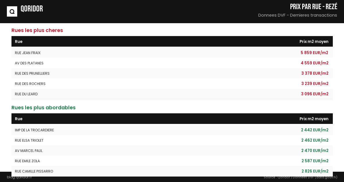 Le prix moyen au m² à Rezé est calculé à partir des transactions immobilières enregistrées (données DVF). Consultez nos données mises à jour automatiquement pour connaître le prix actuel.