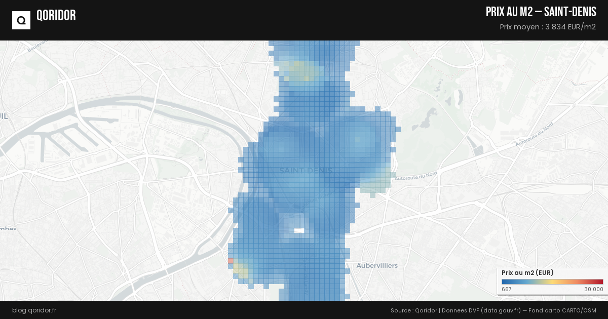 Le prix moyen au m² à Saint-Denis est calculé à partir des transactions immobilières enregistrées (données DVF). Consultez nos données mises à jour automatiquement pour connaître le prix actuel.